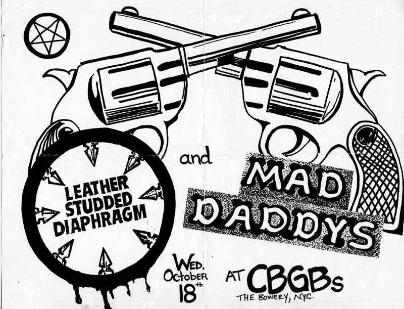 Coming up a little short in the art department, I had nothing to show for the Daddys (other than a poster I made for the Smarties in 1997), so I cheated a bit here. The flyer on the left is from 1999, but is indistinguishable from their 80s promotions. The other is ripped from Eric Gladstone's vast archive of LSD flyers.