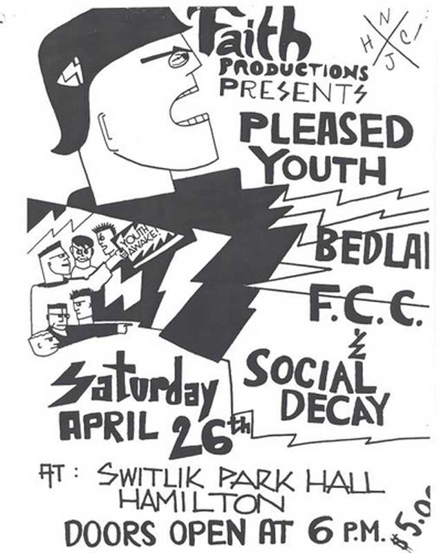 Depicted here are a couple classic flyers, though neither is from New Brunswick. $5 door, all-ages, many bands, and adrenaline the drug of choice.